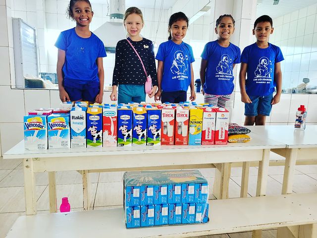 Os participantes do 1º ARRAIÁ na Bike evento realizado no último dia 30/07 em Sorriso doaram 76 litros de Leite longa vida e 130,00 ao Lar .