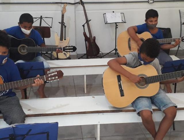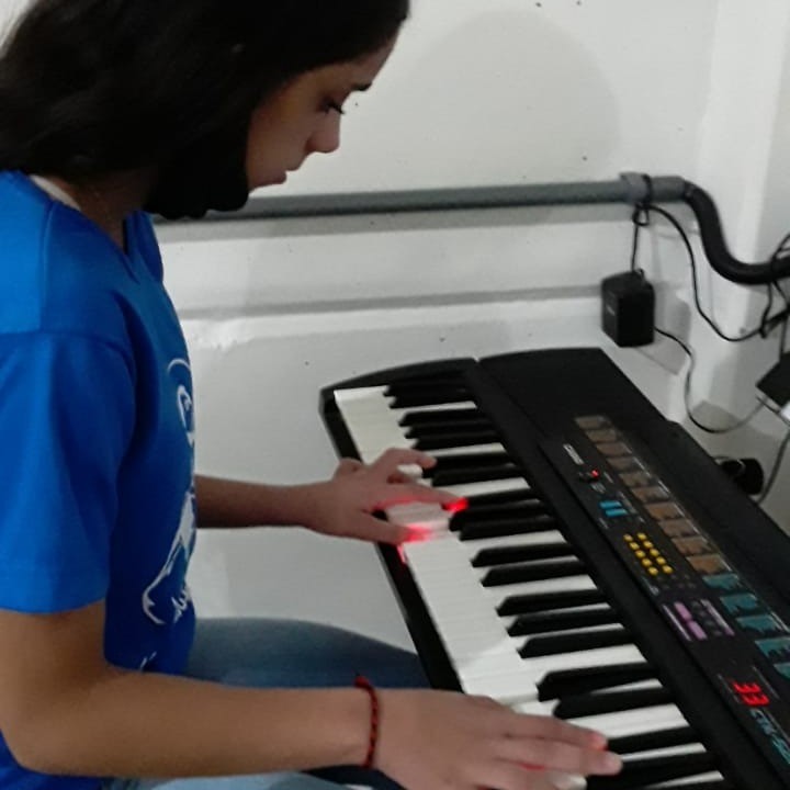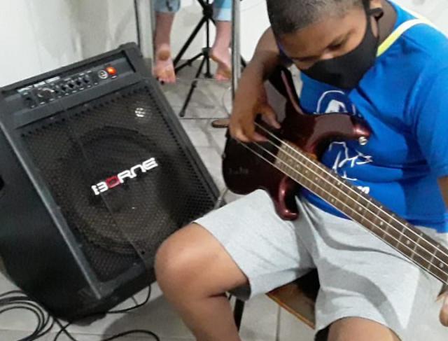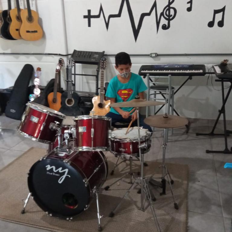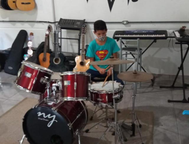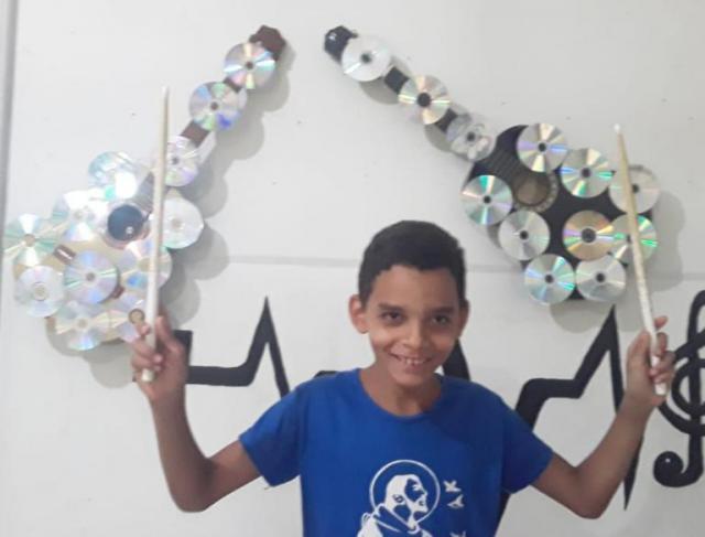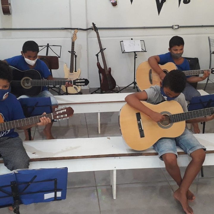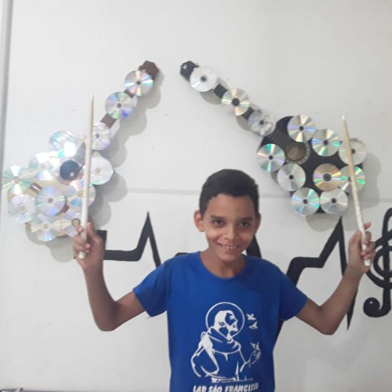 Um pouco de nossas crianças, na oficina de música com o professor Roby